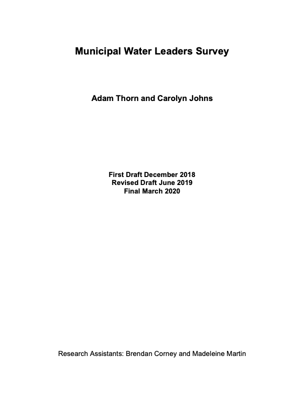 Carolyn Johns (opens in new window) has published the findings from a recent Survey of Ontario Water Leaders. The study was performed with Adam Thorn (external link) and in collaboration with Urban Water TMU. The study surveyed water leaders from 444 municipalities and all 36 conservation authorities in Ontario, with a response rate of 18% and 28.6%, respectively.