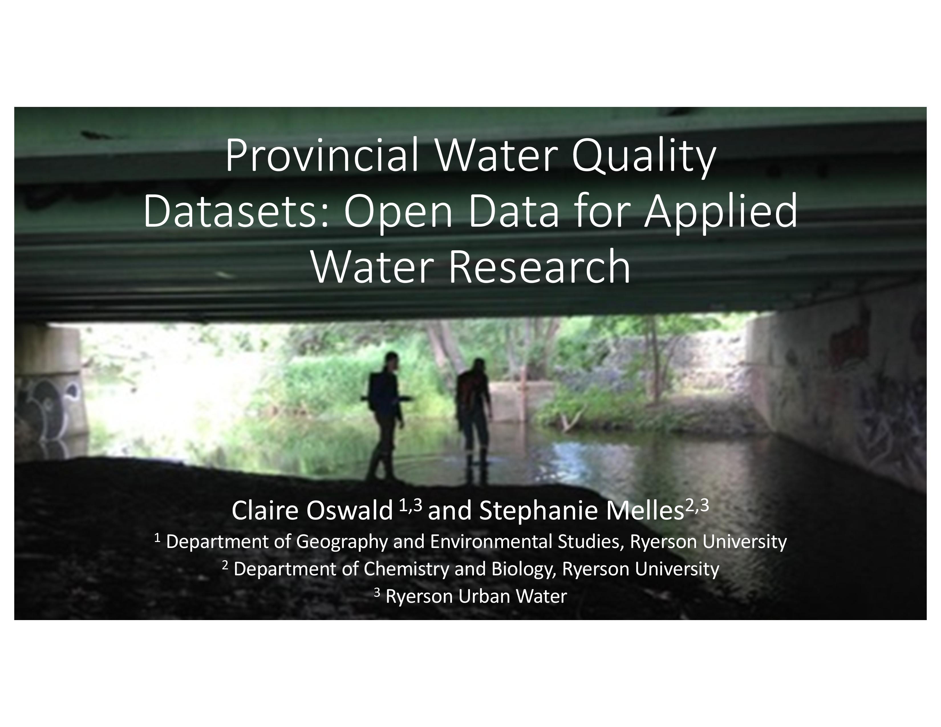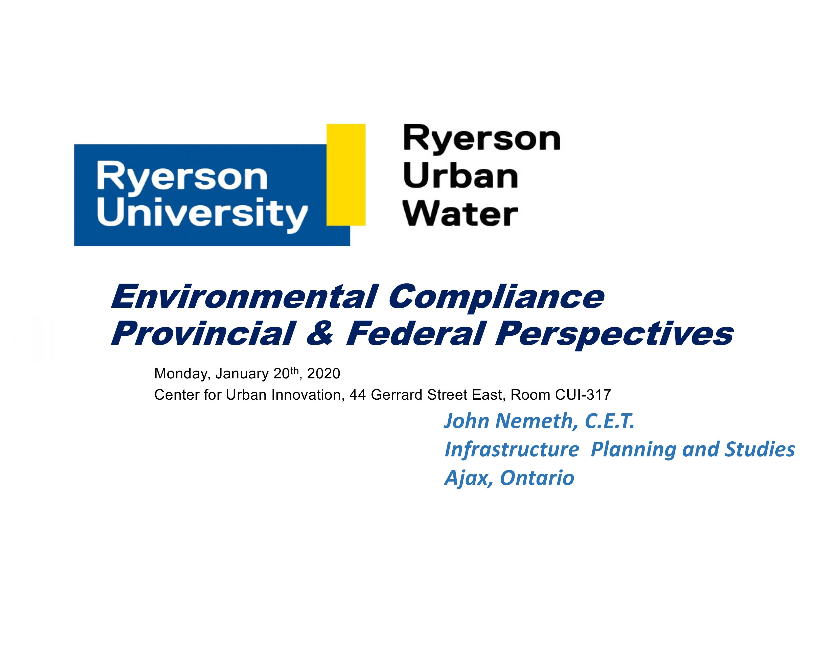 Speakers hailed from Ryerson, University of Toronto, Wageningen University, Ministry of Environment, Parks and Conservation, City of Toronto, Toronto Water, Credit Valley Conservation Authority, Toronto and Region Conservation Authority, Lake Simcoe Region Conservation Authority, Dillon Consulting, Cambium Aboriginal.