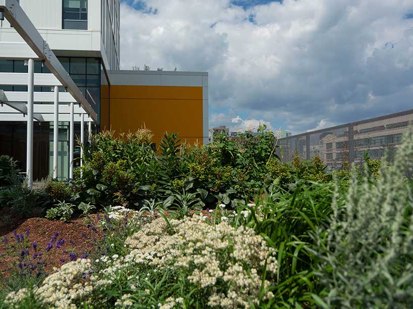 The Urban Farm is a Living Lab that brings together urban farmers, community partners and academics through interdisciplinary research on the rooftop farm. The Living Lab builds on user-driven research needs that respond to the challenges of designing and operating a rooftop farm using green roof technology.