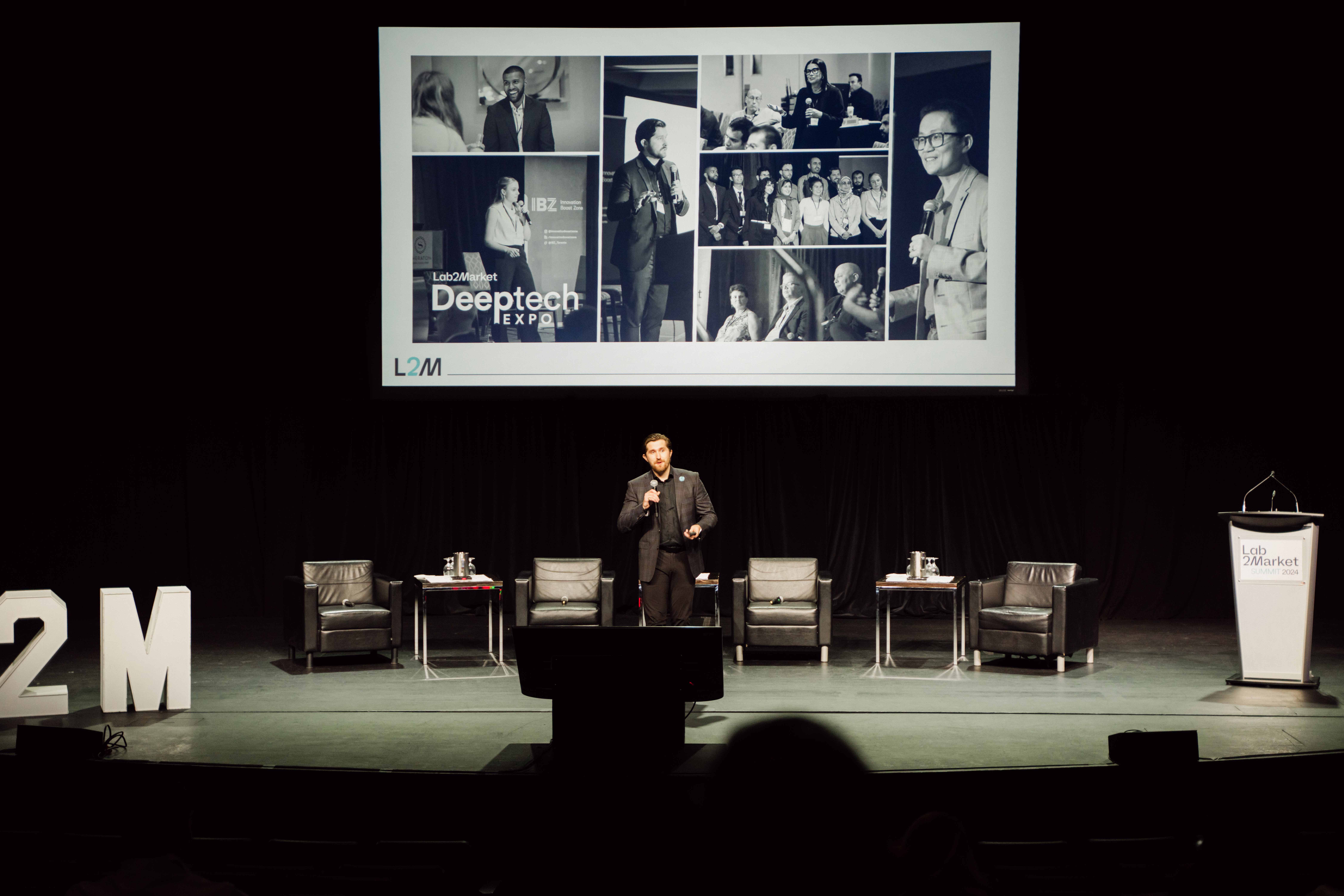 Wesley Kosiba, Deep Tech Startup Manager at the Innovation Boost Zone and Lab2Market National Programming Lead, speaking at the Lab2Market Summit. Photo Credits: Daybreak Studios