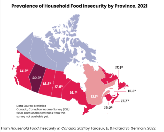 Figure 1.0 Food Insecurity Rate by Province in Canada as of 2020, Statistics Canada.