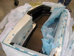 The process of laying up the pre-pregnated carbon-fibre was tedious due to the various hard points and the need to ensure a strong structure. The cross-section of the monocoque was composed of 3 outside layers of pre-pregnated carbon-fibre, a ½” sheet of nomex or aluminium honeycomb (depending on location) and 3 inside layers of pre-pregnated carbon-fibre.