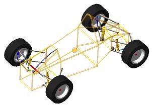 By using ADAMS simulation software, our team was able to save approximately 2 weeks of abstract testing time and about $5000. If time and funding allows we will use these extra 2 weeks to fine tune our vehicle using the settings found throughout the ADAMS simulation software as our basis. The analyzed system comprised of outboard and vertically mounted push-rod actuated dampers with unequal-length A-arms. The model used was a simple tube representation of our chassis. The chassis shown is only a visual representation; our 2003 chassis is actually a carbon fibre monocoque.