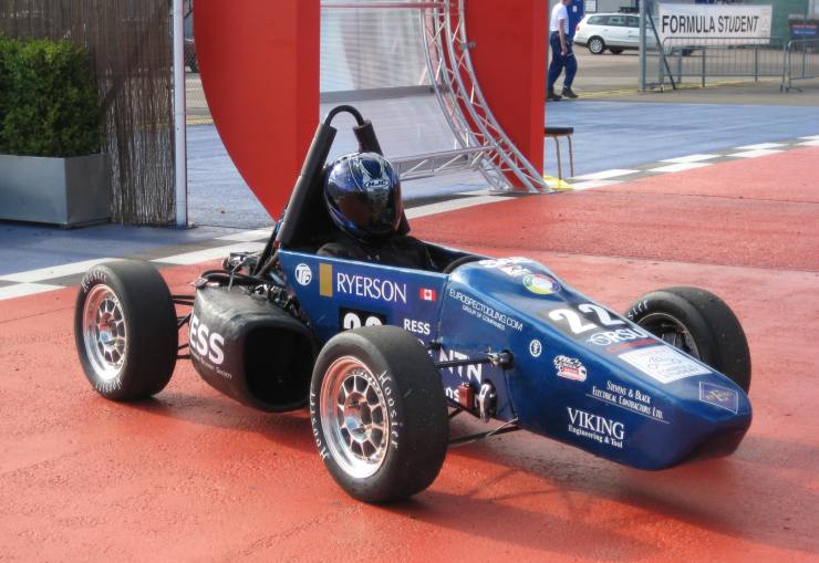 The Formula SAE competition (held annually in Michigan, USA) is a competition which consists of dynamic and static events. The dynamic events include an endurance race, an autocross run, an acceleration run and a skid pad exercise. In the endurance race the car must last 25 min (approximately 22 miles) in race conditions making one pit stop for a driver change. After the endurance race the teams are given additional points based on their fuel consumption. The autocross run is a two lap run of a track which has never been driven on by the drivers. The drivers are allowed to walk the track in advance but are not allowed to take their car out for a practice run. The best time of the two laps is given a ranking versus all other cars entered in the competition and appropriate points are awarded. The acceleration run is simply the fastest in which the car can acceleration from a complete stop to 75 metres. The skidpad points are distributed based how fast a driver can get around a "figure 8" track. Before any of the dynamic events can be run the cars are sent through a gruelling technical inspection in which the car must meet the specific regulations of the competition. After that, the car must pass a test to see if the car can safely handle two g's without flipping over. Then car is put in front of a panel of judges where our team designers must answer very technical and very specific questions regarding the design of the car. Also a thorough cost report and marketing presentation are submitted for additional points. In the end the summation of all the points from the individual competitions decides the final awarded position of the team.